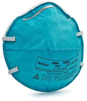 This health care particulate respirator and surgical mask helps provide respiratory protection against certain airborne biological particles. It is disposable and fluid resistant to splash and spatter of blood and other infectious material.